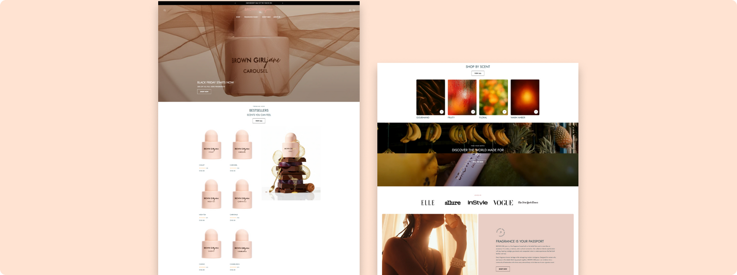 https://browngirljane.comBrowngirljane’s existing Shopify site struggled to represent their energetic and unique brand identity. Pages were cluttered, and the mobile experience was inconsistent, causing potential customers to leave before purchasing.