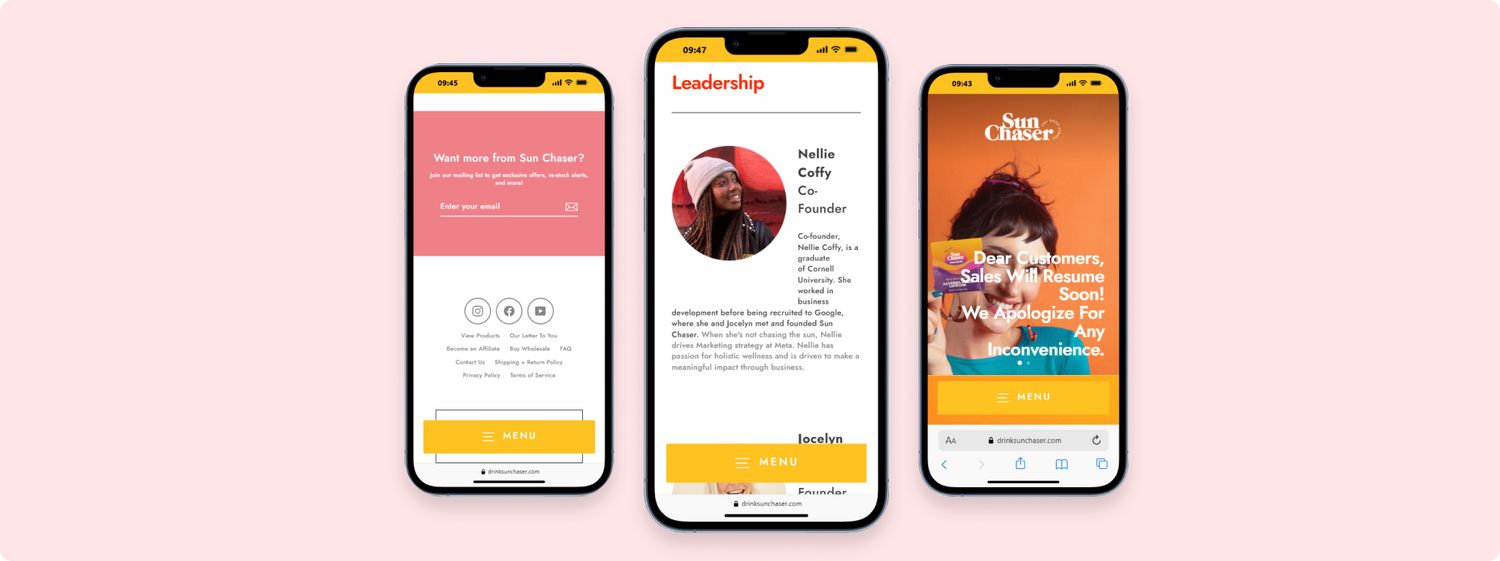 For the pre-launch phase, we integrated Klaviyo, our preferred email marketing service, to handle a "pre-launch signup" automated email workflow on the website. For the purchase phase, we used Yotpo's Subscriptions service to allow customers to sign up for repeat purchases for discount, and Yotpo Reviews to allow a robust reviews display including photo, video, and custom ratings.